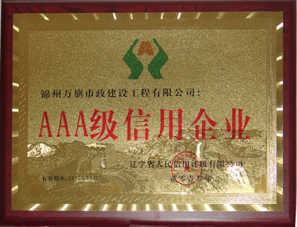 企業已取得重合同守信譽證書、3A信用等級證書、質量管理體系認證證書、環境管理體系認證證書、職業建康安全管理體系認證證書。